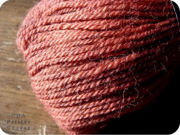 Des couleurs en petite quantité, mais j'ai réussi à en sortir quelques pelotes de 3 fils d'un gris clair et un corail framboise.